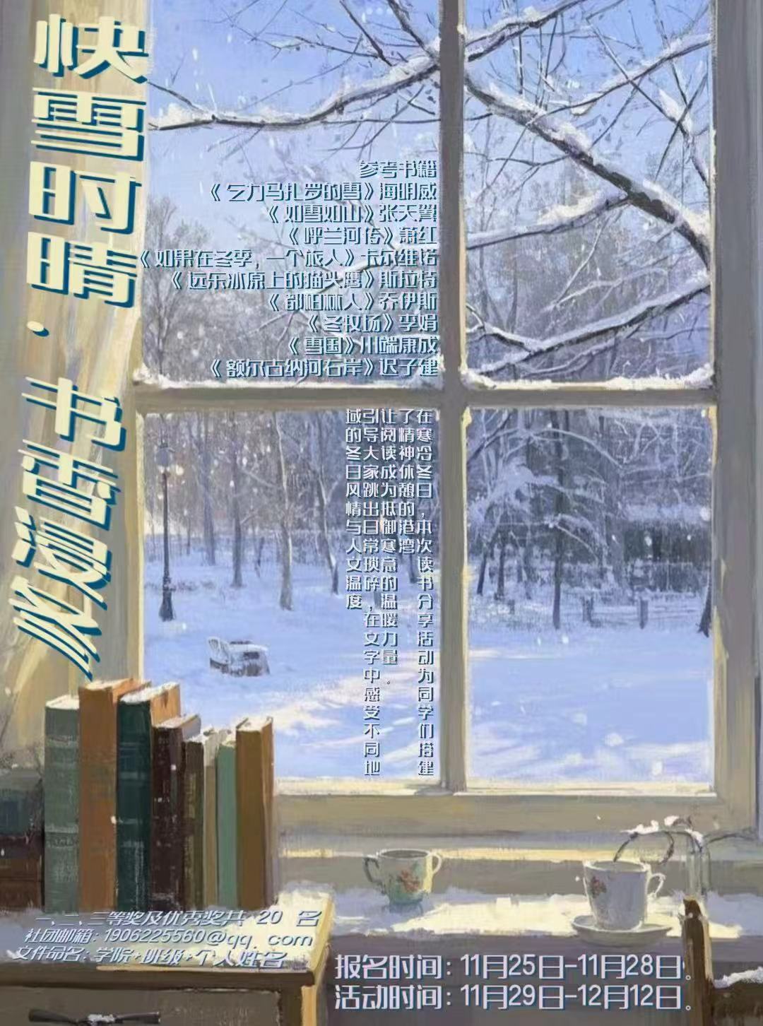 为搭建深度阅读与心灵交流的平台,引领同学们体悟冬日中蕴藏的生命力量,读书社于11月29日至12月12日面...