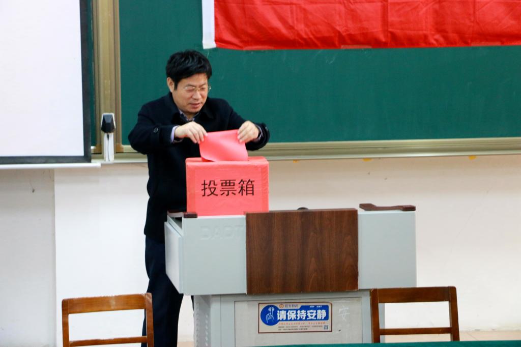 委员会关于第八次代表大会代表选举工作的通知》,并介绍了我院参选代表的名额、条件、产生方法和程序以及出席本次党代会代表候选人预备人选的相关情况。大会以举手表决的方式通过了选举办法并统一刘蓉担任监票人,吴运明、鞠海彦担任计票人。经过全体与会正式党员的不记名差额投票选举产生了我院出席老王论坛