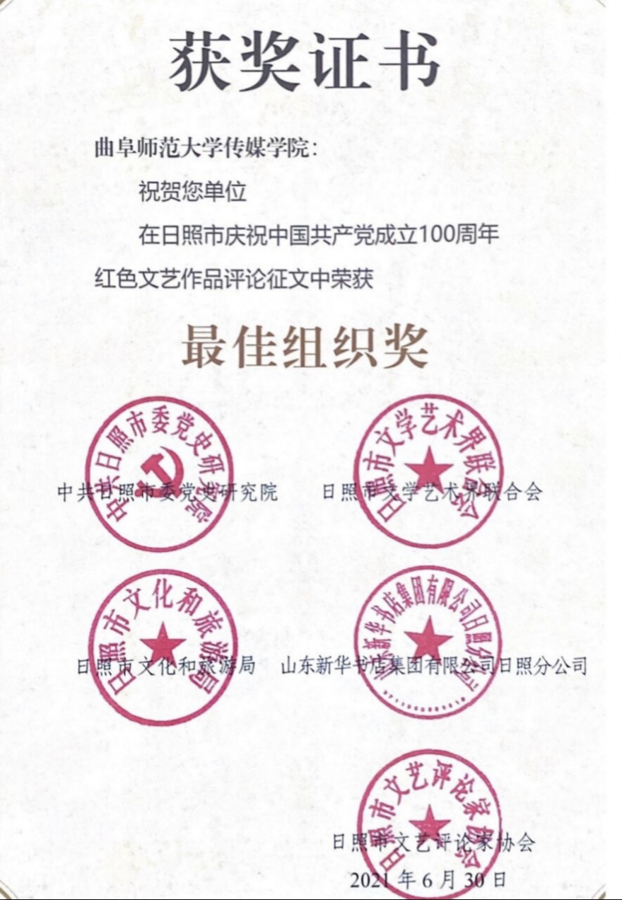 在比赛中荣获“最佳组织奖”,学生共获“二等奖”、“三等奖”、“优秀奖”、“佳作奖”等63项奖项。其中,20级新闻学刘墨玲获“二等奖”,周羽柔等4名学生获“三等奖”,曾琴令等19名学生获“优秀奖”,向兰等38名学生获“佳作奖”。随后,日照市文艺评论家协会会员、老王论坛