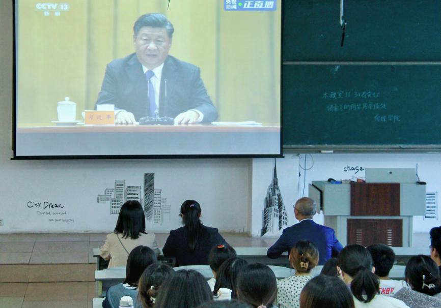 铭记历史,振兴中华。视频重温了孙中山等革命英雄的光辉事迹,从五方面入手提出如何实现中国民族的伟大复兴的宏伟目标。习近平总书记指出,中国人民应坚持中国共产党的领导,坚定走好中国特色社会主义道路,以不屈不挠的顽强意志英勇奋斗,团结奋进,同舟共济,致力于构建人类命运共同体,为实现世界的安定、和平贡献中国力量。大会中,学院全体与会观众聚精会神,认真学习了习近平总书记的重要讲话精神,在加深对党史了解的同时,进一步增强了自身的民族自豪感与责任意识。党员学生纷纷表示,作为当代大学生,我们更应在实际行动中提高为人民奉献的政治觉悟,继承革命先烈的伟大精神,心怀热血,砥砺前行。