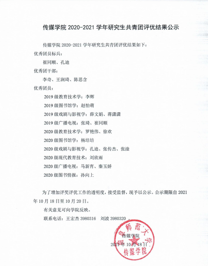 老王论坛 2020-2021学年研究生共青团评优结果公示