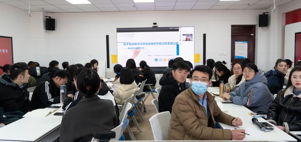 会议伊始,焦丽珍主任从“技术促进教育高质量发展研究前沿和重要议题”出发,讲述期刊论文写作的具体“修炼”过程。随后,焦丽珍主任强调了选题的重要性、文字的准确性、文献的全面性和学术的规范性,并结合案例具体讲解了选题的标准、特点及发展的一般规律等内容。接着,参会研究生积极向焦丽珍主任请教论文写作中遇到的问题,焦丽珍主任耐心解答。最后,徐振国就焦丽珍主任的报告内容进行总结。