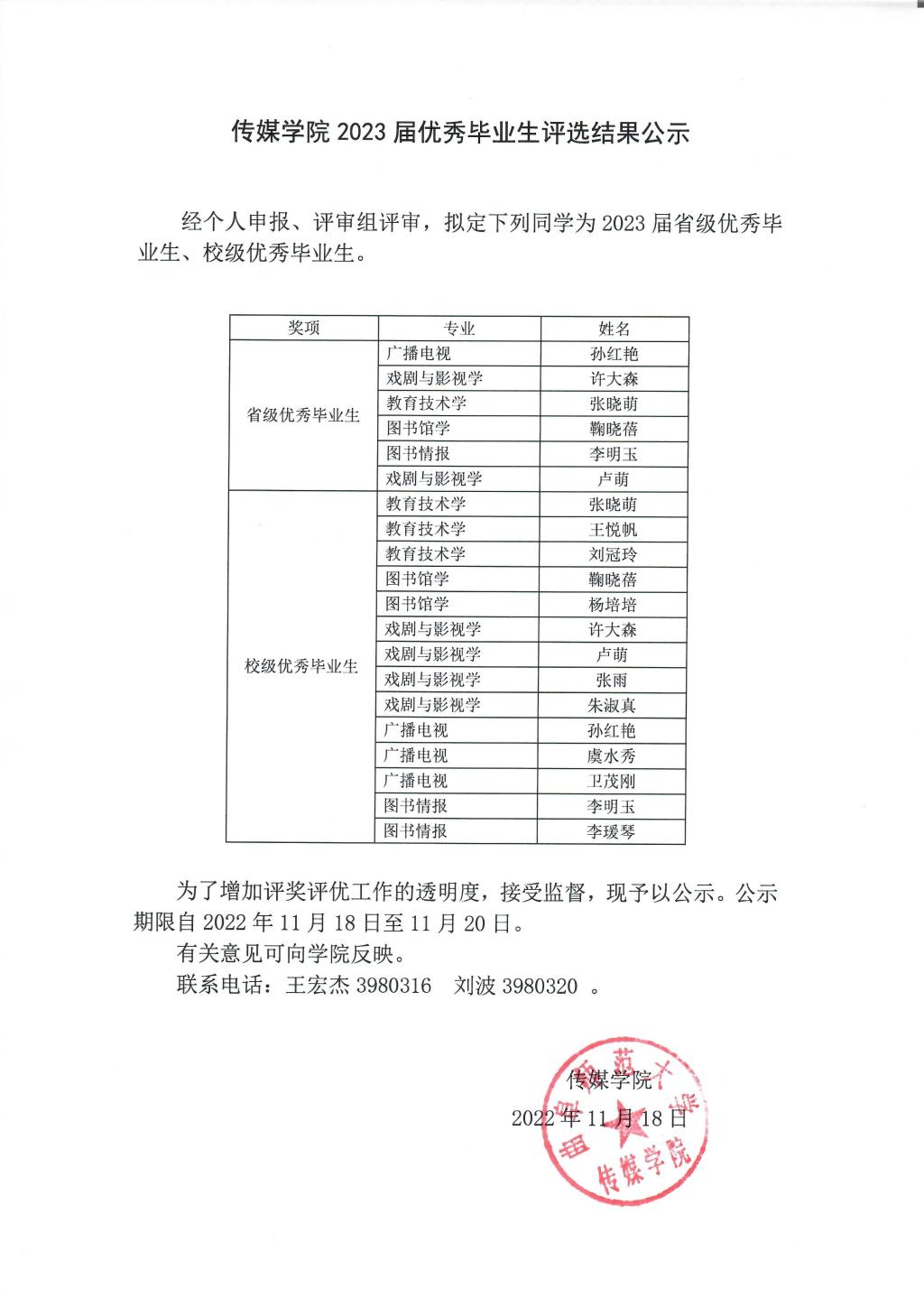 【来源:老王论坛 2023届优秀毕业生评选结果的公示公告 | 发布日期:2022-11-18 】
