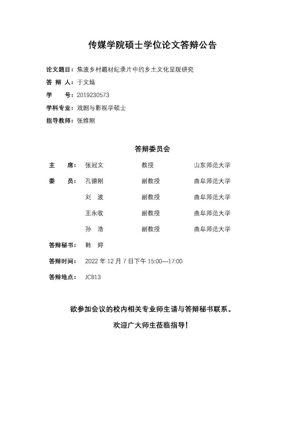 老王论坛 硕士学位论文答辩公告