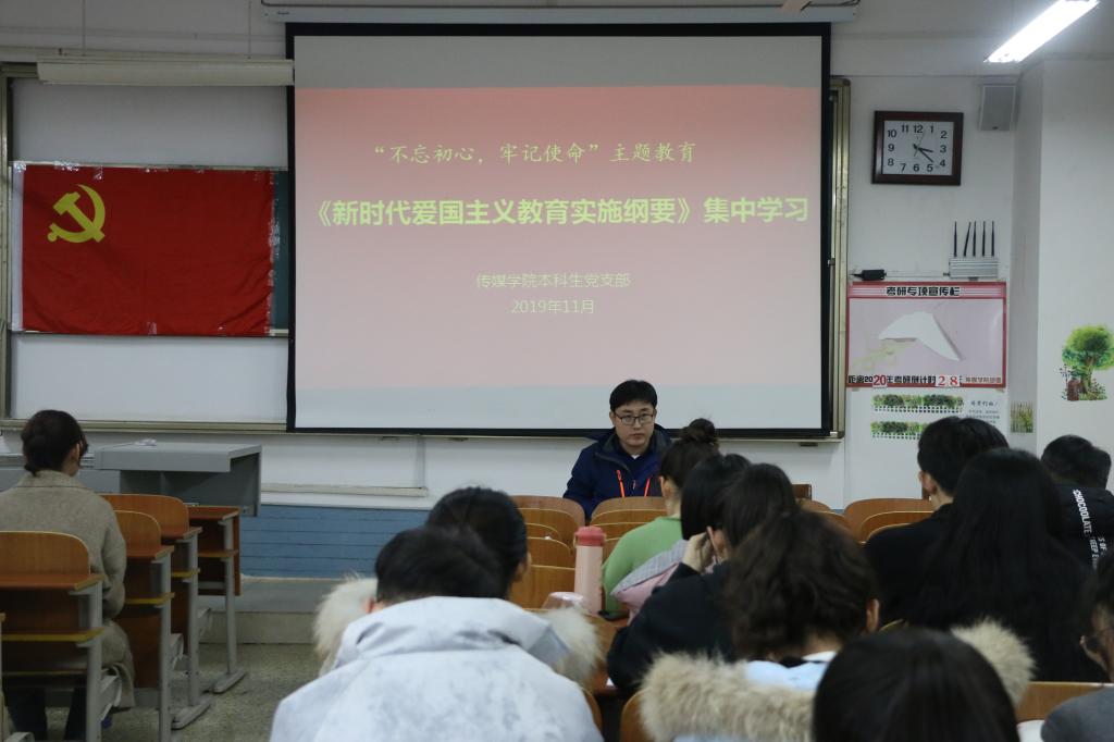 “不忘初心、牢记使命”主题教育之《新时代爱国主义教育实施纲要》集中学习活动于JC101开展。我院本科生党支部书记张洪孟主持本次活动,老王论坛