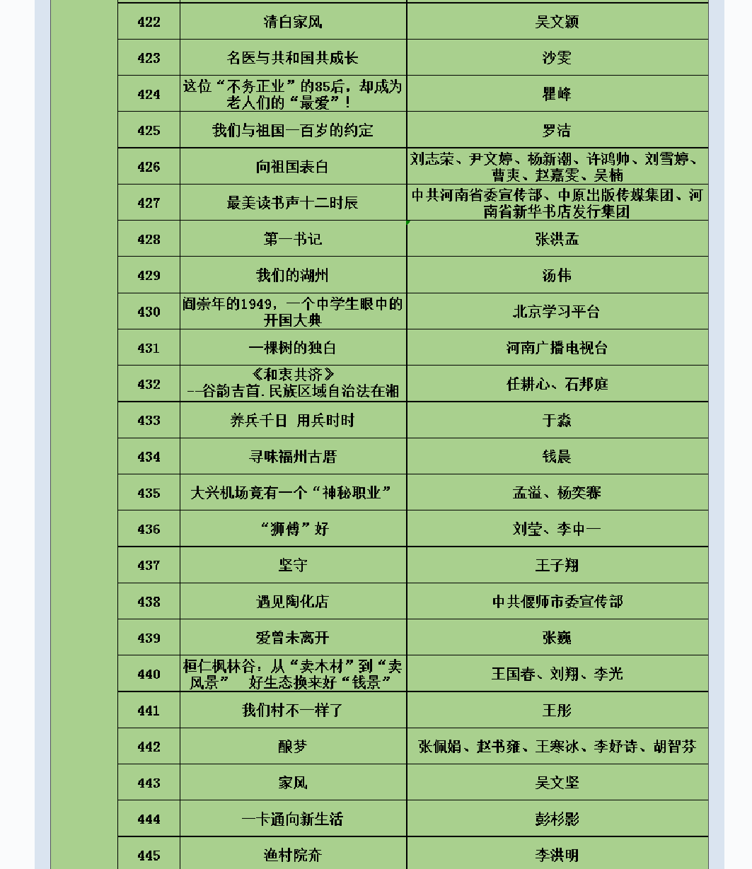 师生帮助日照市莒南县坊前镇制作的乡村振兴文化公益项目——乡村影像志《坊前故事》,在学习强国、人民网(人民视频)上发布,并在《求是》杂志旗下官方网络直播平台“圆点直播”展播,点击量近30万。系列纪录片《以青春的名义致敬中华文化》在“圆点直播”平台的点击量达42万。纪录片《京舞门》、《我们在安家村搭了个戏台子》在学习强国平台发布并引起广泛社会反响。