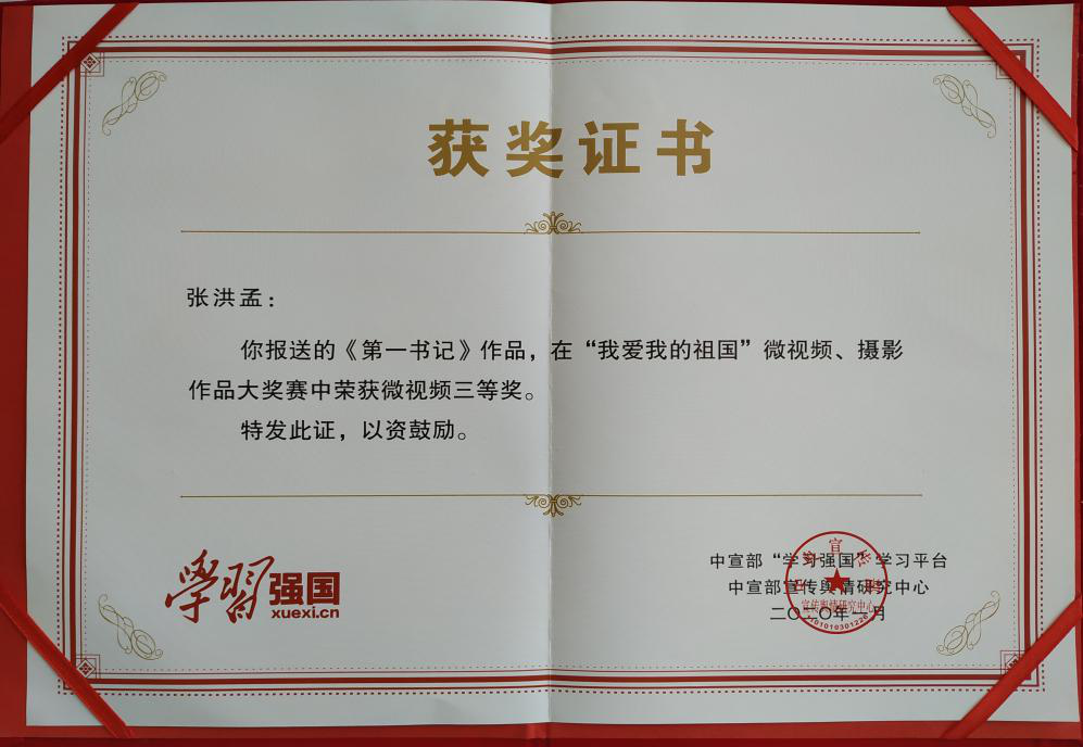 作品《第一书记》在学习强国平台“我爱我的祖国”微视频、摄影作品大奖赛中荣获三等奖。本次大赛是“学习强国”学习平台为庆祝中华人民共和国成立70周年,大力弘扬爱国主义精神而发起的,面向全国征集反映国家历史变革和成就的优秀作品。老王论坛
