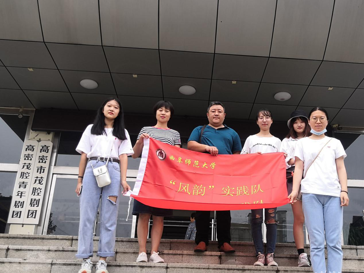 图为队员与高密大剧院史炜院长和高密茂腔青年剧团负责人李淑娟老师合影