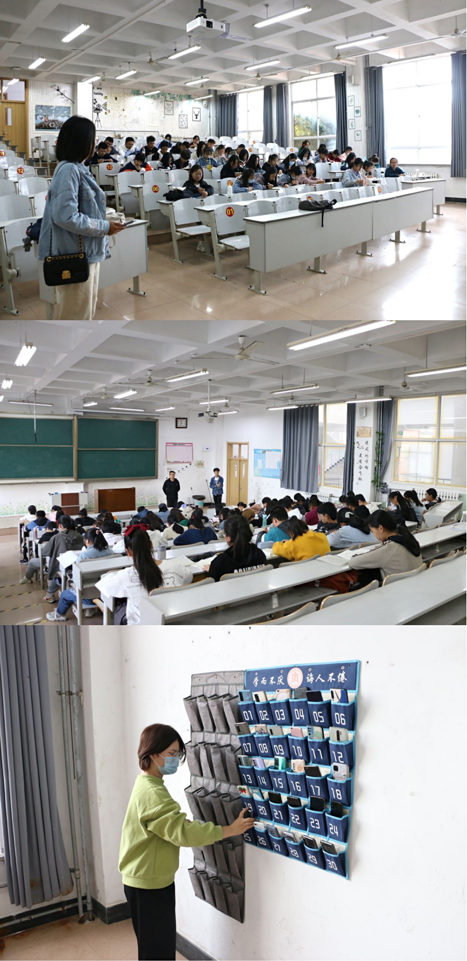 晨读课伊始,纪检部检查手机上交情况,确保手机处于静音状态,并询问各班智慧曲园填报情况,保证学生每日健康情况的及时提交。随后,刘扬帆、商秀英进班查看,发现早读存在的个别问题,给予提醒并建议大家合理安排早读时间,有所规划。晨读课上,2020级新生总体状态良好,正式开启大学生活新篇章。