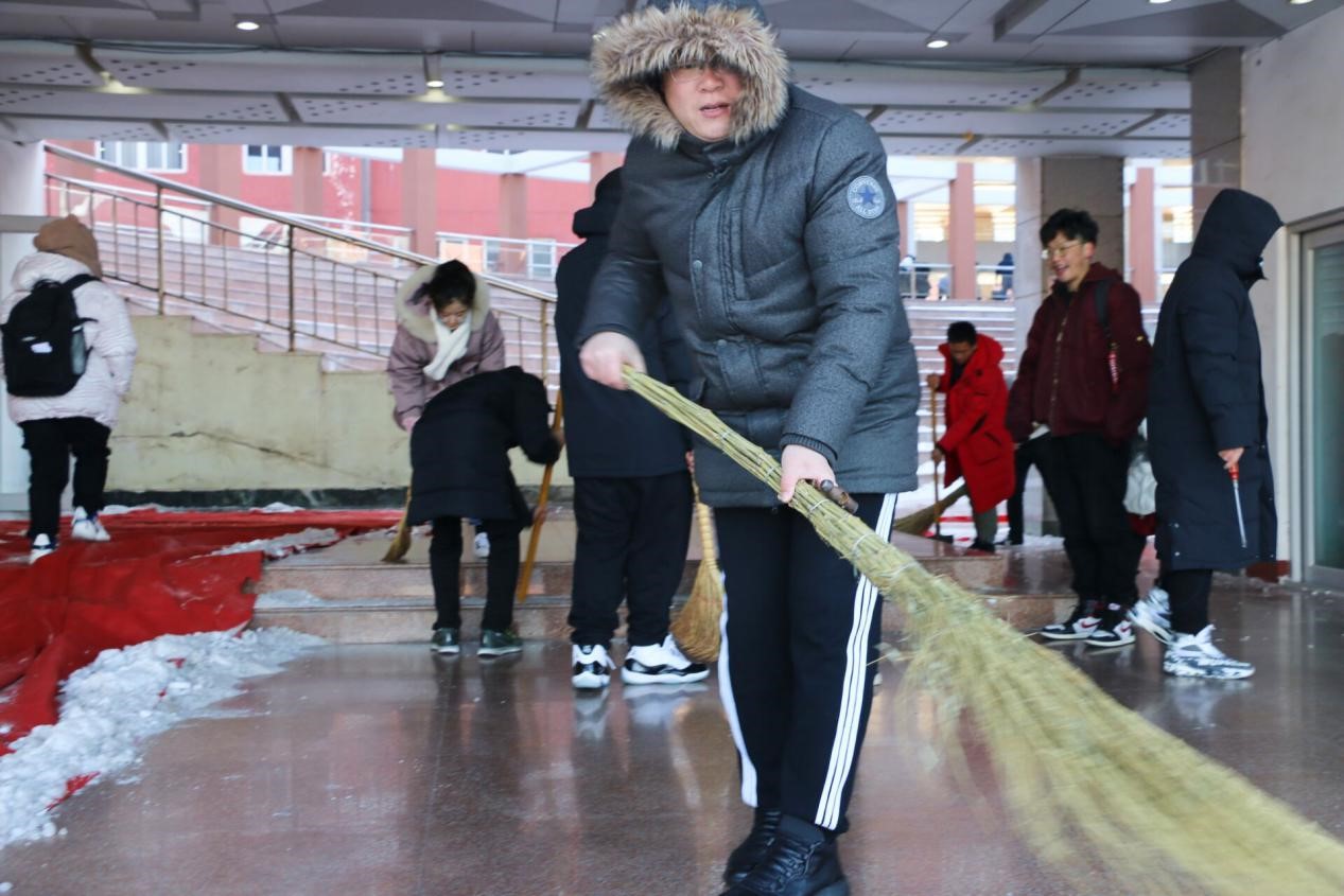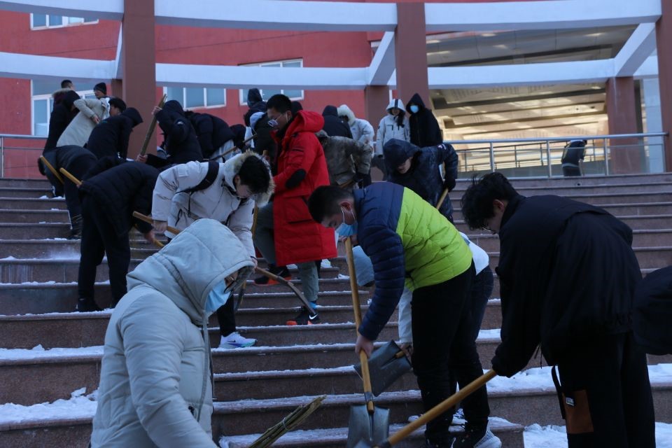 于12月30日14:00开展了扫雪除冰活动。党委副书记徐正伟,辅导员绪慧敏、乔希、刘扬帆、商秀英带领部分学生干部参与了本次活动。