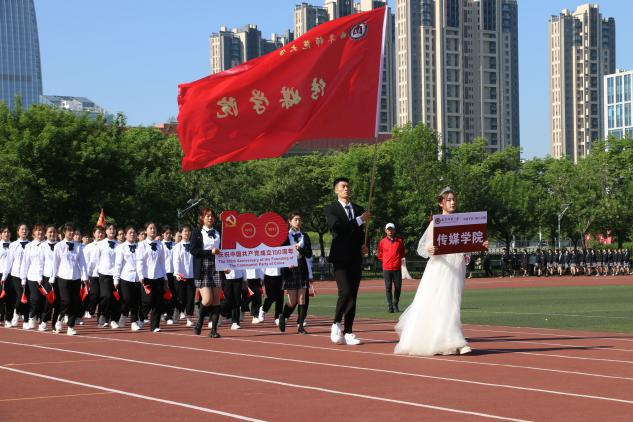 方阵整齐划一。他们激情饱满,以昂扬向上的激情展现了传媒学子的青春活力。