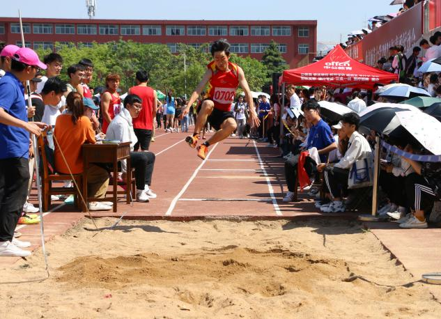 奋力一跃,目标就在前方。完美的弧线,腰部与腿部力量的充分结合,沙坑上留下的不仅是一双简单的脚印,还是传媒学子敢拼敢闯的不屈精神。