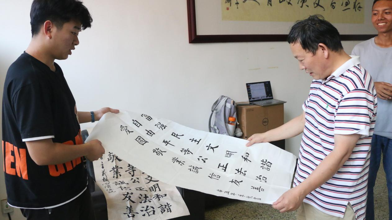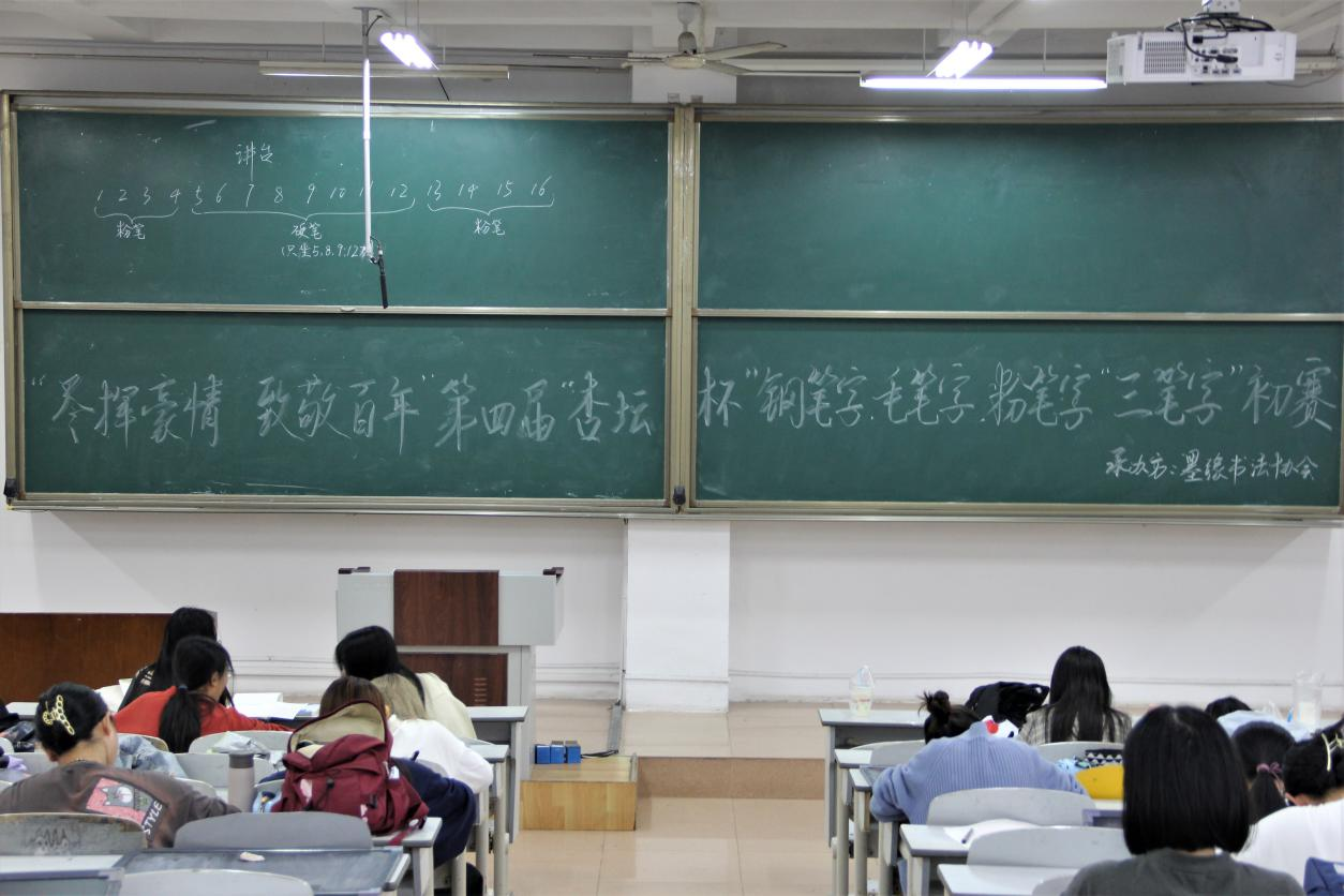 于A105顺利举办第四届杏坛杯钢笔字、毛笔字、粉笔字“三笔字”大赛。李兴作为指导老师进行赛后参评。