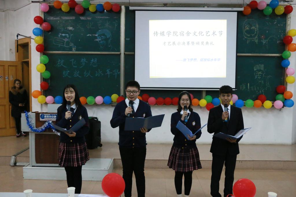 活动最后,主持人宣布宿舍公约大赛、宿舍个性照、宿舍装饰大赛以及才艺大赛获奖名单,并由颁奖嘉宾上台颁奖。经过激烈的比拼,小品《腊月奇迹》摘得桂冠,《尤克里里弹唱和歌曲串烧》和杯子舞获二等奖,《匆匆明月》、《暗香》、《501版灰姑娘》和《相信未来》并列三等奖。此外,表演间隙及结尾安排了惊喜抽奖和游戏环节,同学们踊跃参加,工作人员精心准备的小礼物得到大家一致好评。