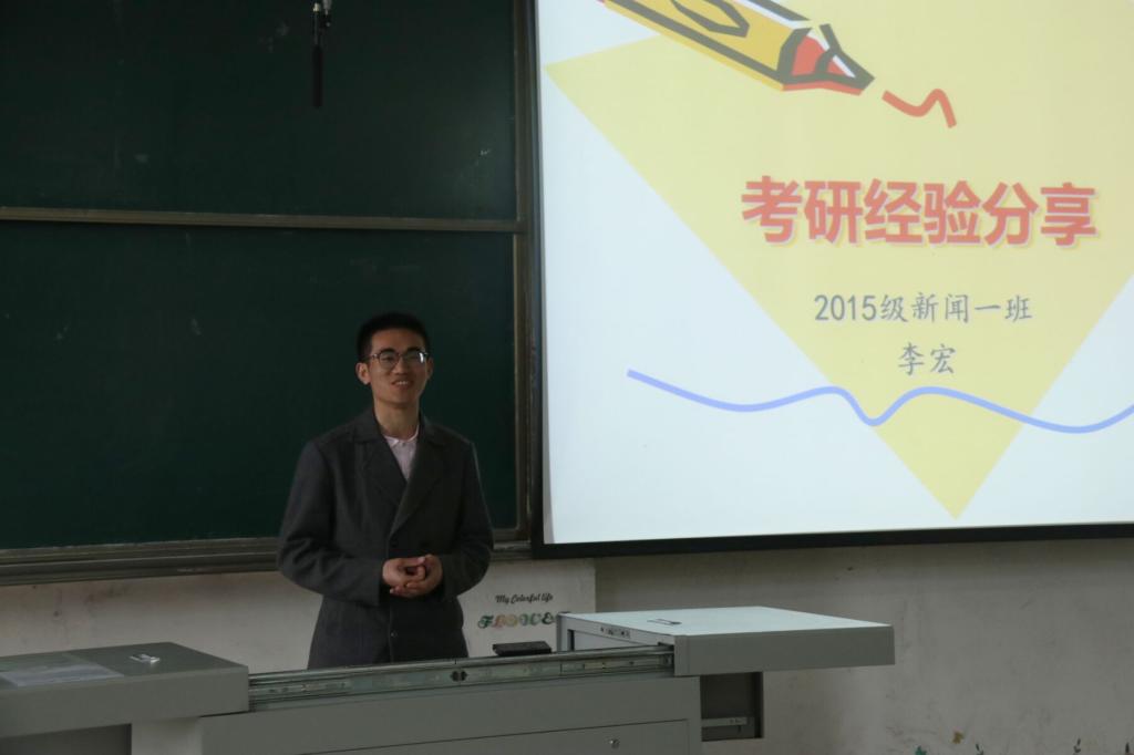 2016级新闻学专业考研经验交流会在JA102顺利举行。2015级考研优秀学子马乐、张顺、李宏担任本次交流会的主讲人,老王论坛