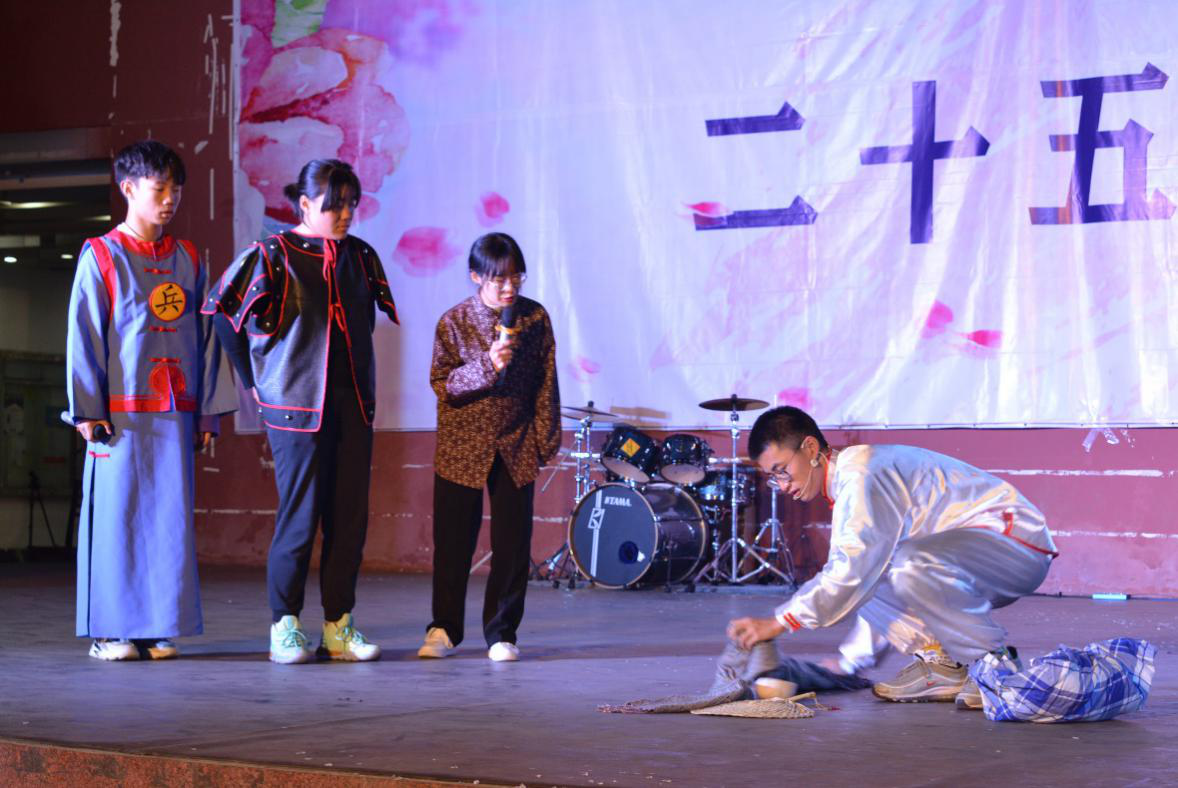 晚会上,潮声文学社社长鲁延灏为潮声文学社送上了二十五周岁生日蛋糕,现场进入互动环节,晚会气氛十分活跃。黄海影视剧社带来的话剧《从前有座山》,讲述了一个小和尚努力冲破封建禁锢,追求自身价值的感人故事,其动情的演绎令观者潸然泪下;古装舞《芒种》、小合唱《我》以及来自音乐学院的乐队表演,都令观众赞叹不已。最后,在潮声文学社社歌《潮呓》中,晚会落下帷幕。社团成员与全场观众一起合唱,为此次晚会画上了完美的句号。