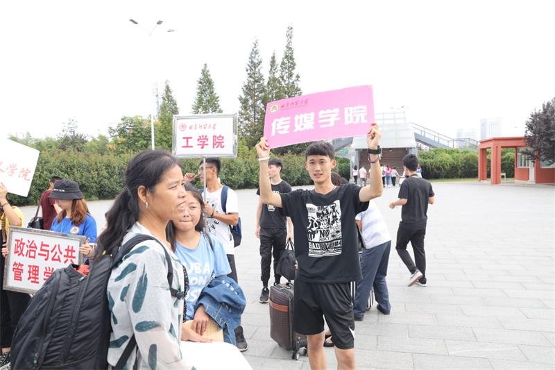 的院牌,对接乘坐大巴到达学校的新生,保证他们能够及时准确的找到学院完成报到工作。除此之外,我院还设有专门人员帮助新生搬运行李并指引他们找到对应的宿舍。本次迎新活动中,我院团委学生会各部门联系密切,积极配合,向报到新生及其家长展现传媒学院的独特风采。