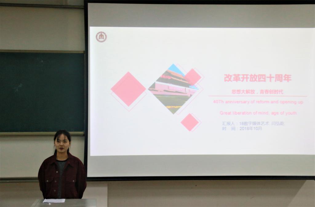 开展的“思想大解放,青春创时代”主题演讲比赛活动于10月21日下午5:00在JA102顺利举行。2018级教育技术学四班崔茹霞、新闻传播学一班王淑玉、数字媒体艺术班闫弘乾等同学参加了本次比赛,团委学生会主席团成员和文艺部成员作为本次比赛的评委出席本次活动。