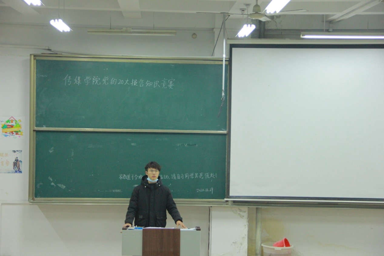 于JA304开展了“党的二十大报告知识竞赛”。比赛在传媒团委副书记雒纬奇的主持下展开,部分同学参加活动。