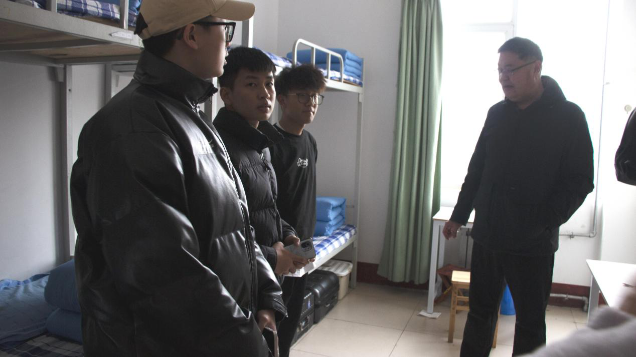 党委书记王宏杰与全体辅导员深入学校宿舍园区看望学生,及时了解并掌握返校学生相关信息。