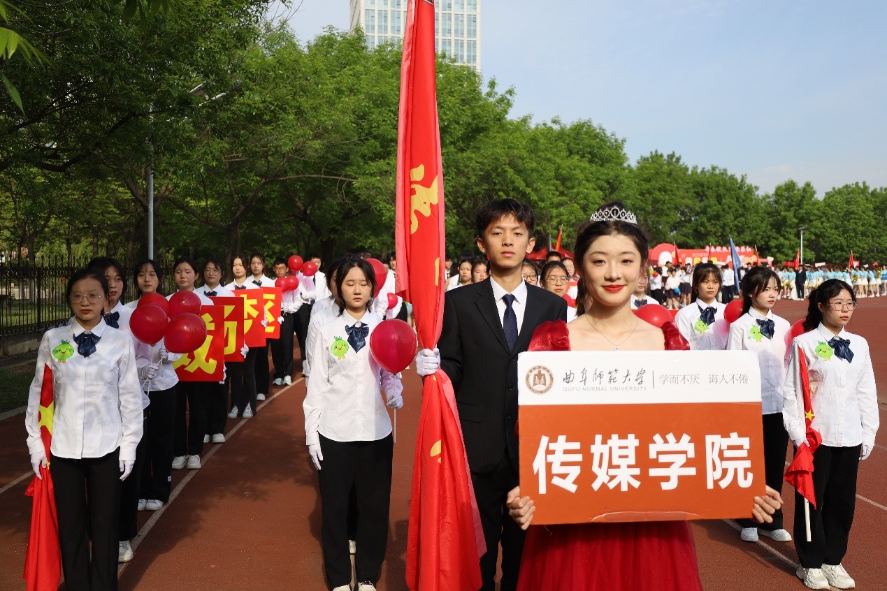 方阵喊着“青春传媒,人生无畏,团结拼搏,奋发有为”的嘹亮口号,飒爽英姿,昂首阔步,精神抖擞,每一步的迈进都是炽烈的希望,挥舞鲜红的气球,向全校师生展示着青春的风采。
