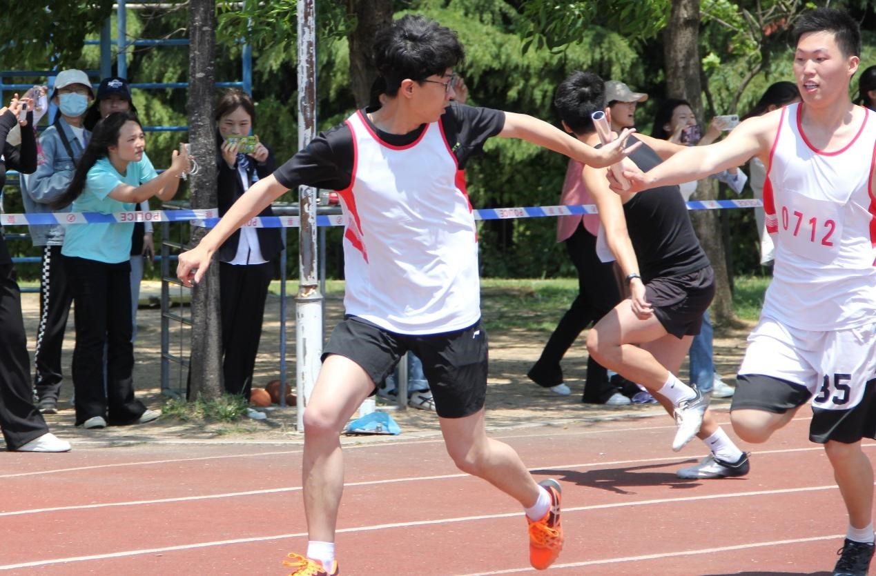 抬腿小跑,手臂向后伸,提前做好准备,队友将接力棒递过来了,接棒,向前冲!每一次短暂的交接,都是对队友默契的考验,信任与期待、默契与合作,都在队友间传递。