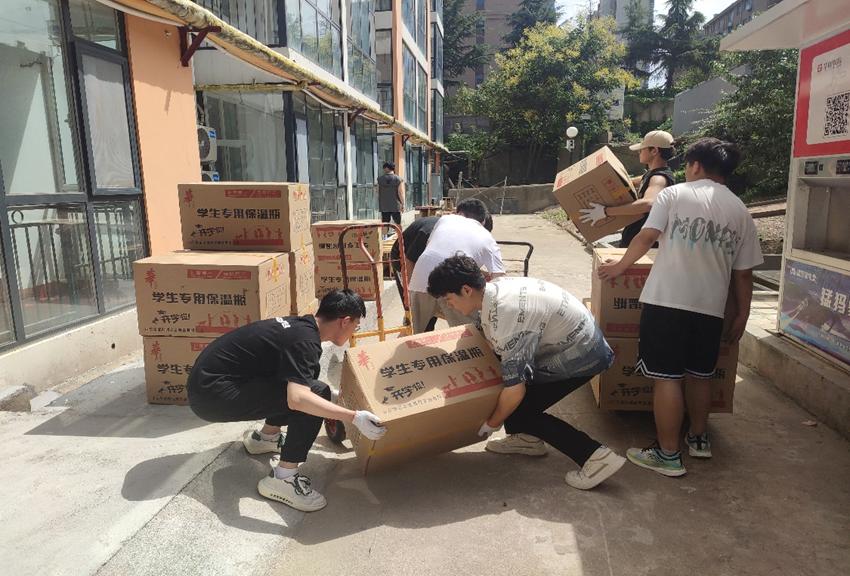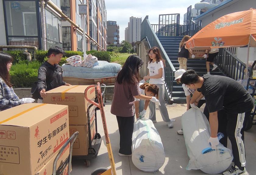 2022级志愿者团队在学院组织下,来到东升园为2023级新生搬运了脸盆、暖壶、马扎等生活用品,为新生的到来做好了前期准备工作。