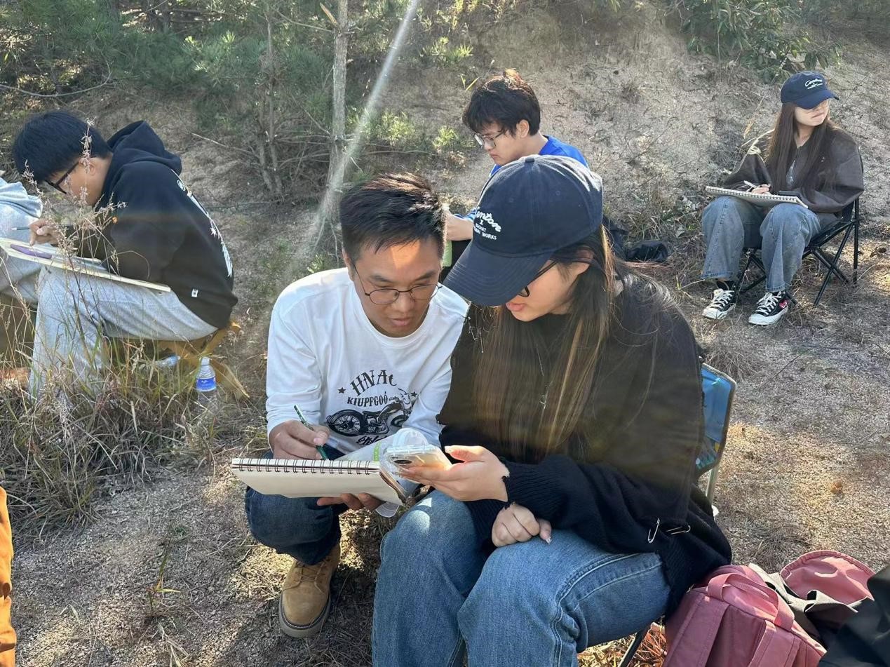 风景写生工作是学院数字媒体艺术专业学生实践能力培养的重要一环。活动引导学生走向户外,与自然交流,与天地对话,将艺术理论学习与创作实践相结合,切实提升审美素养,锻炼自身绘画技艺。带队教师孔勇认为,“从构图的取舍,到画面的色彩安排,从画面虚实的设计,到空间关系的表现,写生也是一种取舍,这些选择会融入到你的画面里,留下鲜活与永恒的印迹。”他鼓励传媒学子在写生活动中积累创作经验,从自然美景中汲取艺术力量。