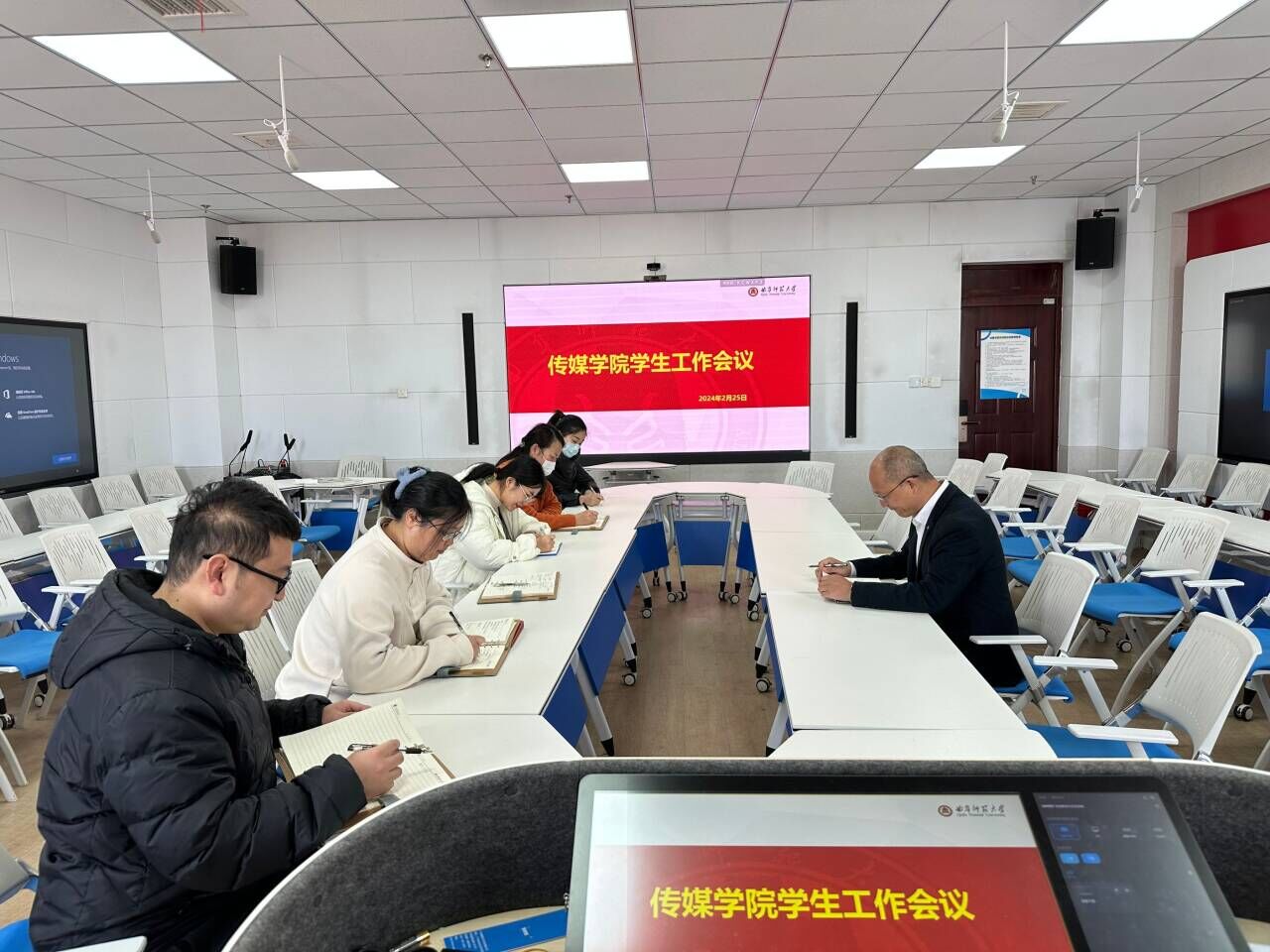 于 JC813 召开学生工作会议。会议由学院党委副书记田荣林主持,全体辅导员参加。