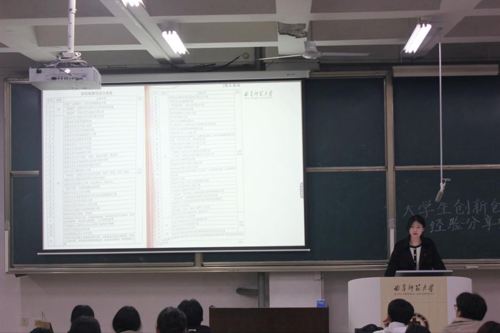 会上,郭晋菡向学生们详细介绍了创新创业类比赛的基本常识。郭晋菡梳理了挑战杯、中国“互联网+”大学生创新创业大赛、大学生创新创业训练计划项目等多项在校可参与的创新创业类比赛的参赛时间、含金量、获奖难度,她建议提前了解各类比赛的时间、基本流程、组别设置、赛程安排等问题,明确对比赛整体的规划。同时,郭晋菡提供了创业类商业计划书模板,并进一步介绍了项目计划书撰写的注意点,包括选题的确定、资料的来源、内容的设置、图表的运用等。