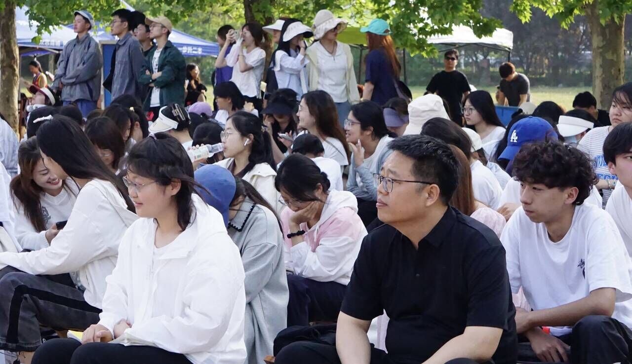 党委书记田维柱来到春季运动会现场,与学生们一起观看比赛,师生共同为运动员加油助威。