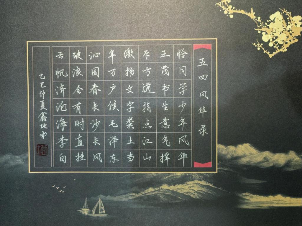 此次活动创新融合传统文化元素与青年活力,通过笔墨体验深化同学们的文化认同与自信,激发同学们对五四运动精神的思考,进一步提升书写技艺,同时促进同学们之间的交流与合作,营造起浓厚的校园文化氛围。活动吸引了众多学生参与,大家以笔墨寄情怀,以撇捺书情思,用硬笔与毛笔两种方式诠释对五四精神的理解与感悟。