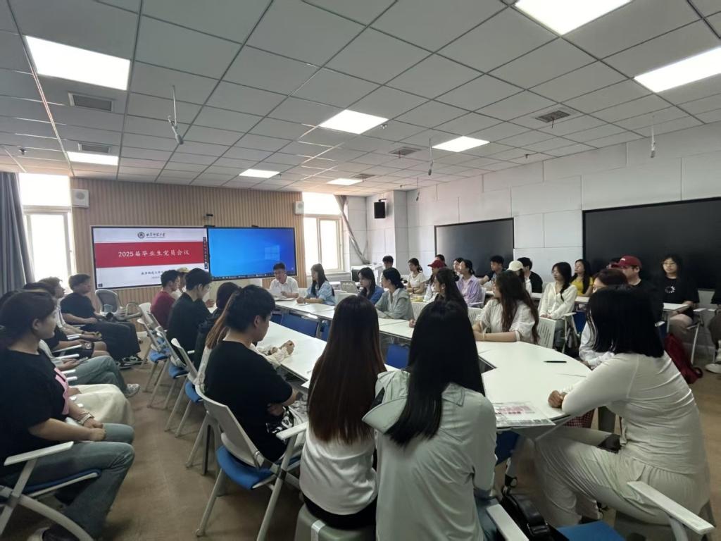 在JC813顺利召开2025届毕业生党员会议。会议由学院毕业生辅导员张洪孟主持,全体毕业生党员共同参加。