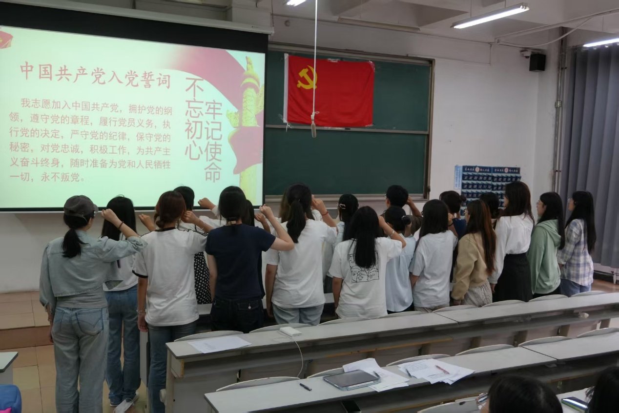 会议由雄壮的国歌中拉开序幕,与会人员深入学习领会了习近平总书记2025年5月1日在《求是》杂志上发表的《激励新时代青年在中国式现代化建设中挺膺担当》。各党支部书记引领党员集体研读、交流探讨,鼓励新时代青年在学习和工作中挺膺担当,肩负时代使命。各位入党申请人逐一宣读了自己的入党志愿书,阐述了自己的入党动机和为共产主义事业奋斗终生的决心。入党介绍人分别汇报了入党申请人的表现情况,对其进行了认真评议。随后,大会通过无记名投票的方式进行表决,一致同意吸收他们为中共预备党员。各党支部书记组织并带领中共预备党员进行入党宣誓仪式,全体党员紧握右拳,目光坚定,面向党旗进行庄严宣誓,以铿锵誓言为指引,筑牢信仰之基石,坚定前行之方向。