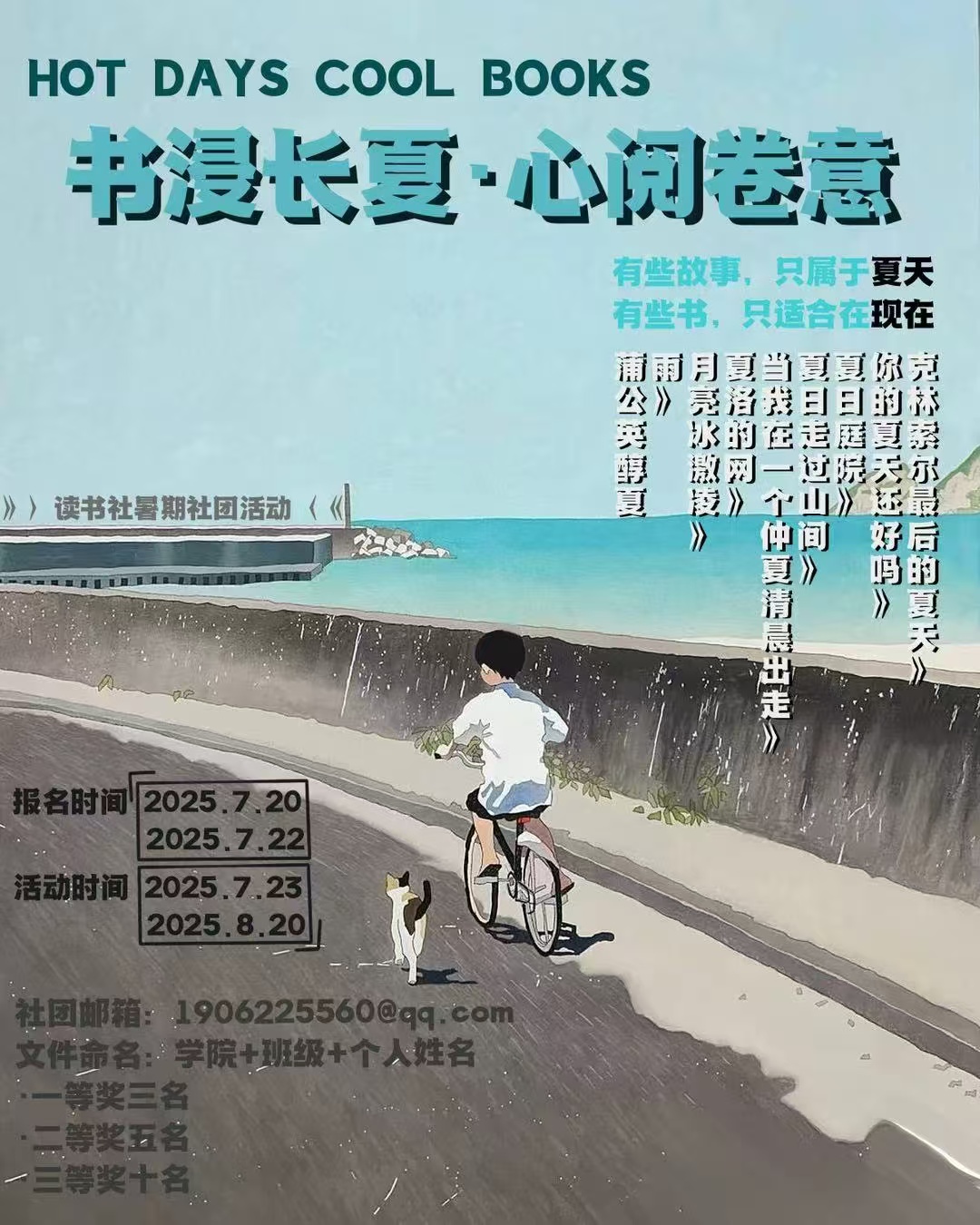 为丰富学生假期生活,营造书香校园,7月23日至8月20日,读书社举办了“书浸长夏·心阅卷意”主题阅读活动。活动面向老王论坛
