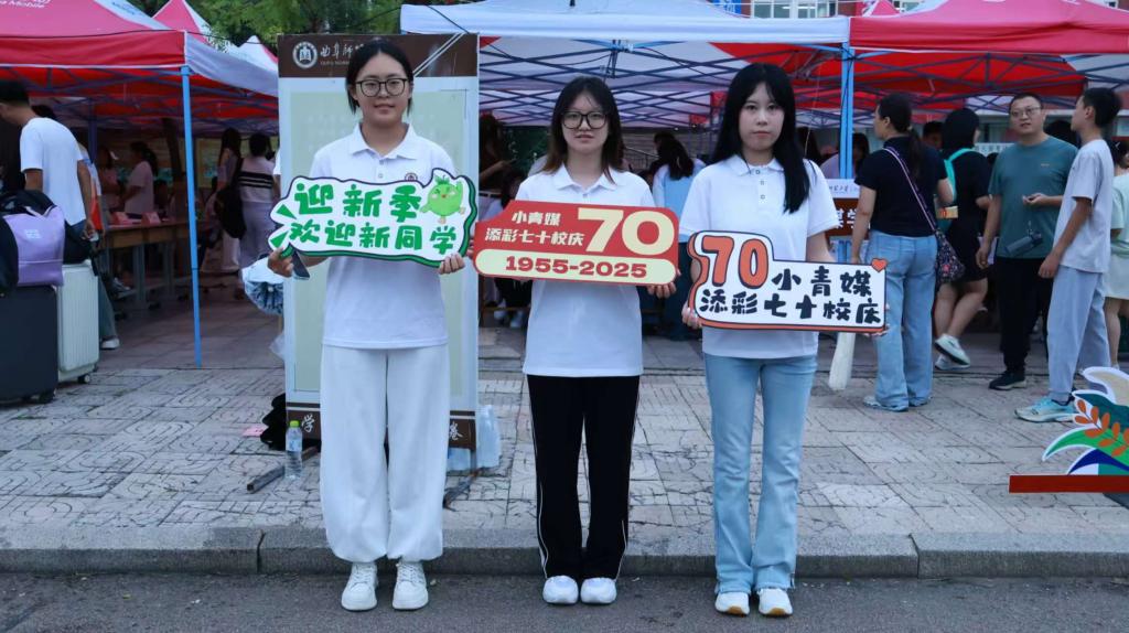 为让新生更快融入传媒大家庭,学院精心设计了多项特色迎新活动和融合专业特色的文创礼物。专属“传媒印象打卡区”以不同的传媒元素和七十周年校庆为背景,搭配可爱的“小青媒”卡通形象,成为新生拍照留念的热门地,快门声中满是新生的笑容。文创礼物则融入了传媒经典符号与校园文化元素,每一份礼物都承载着师哥师姐的祝福,让新生直观感受到学院的用心与温度。