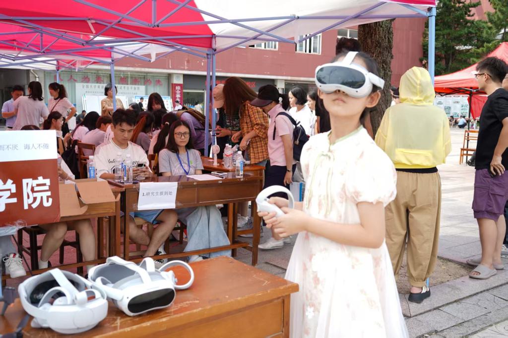 志愿者们尽职尽责地带领新生穿梭在校园的各个角落,详细介绍了图书馆、教学楼、食堂、快递站等场所的具体位置和行走路线。与此同时,还带他们体验了VR、无人机设备,在体验设备的同时获得知识、增长见识。