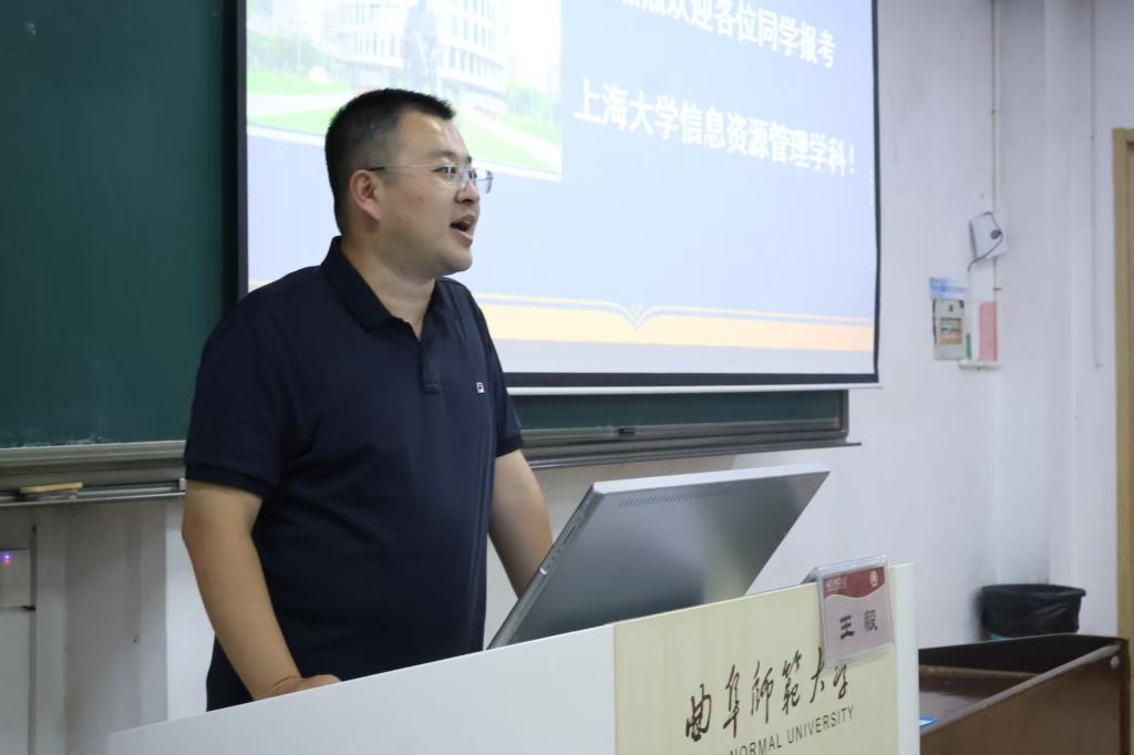 院长王焕景及学院2023级辅导员王春晓出席本次活动,教育技术学专业和新闻学专业部分本科生参会。会议由上海大学信息资源管理专业教授王毅主讲。