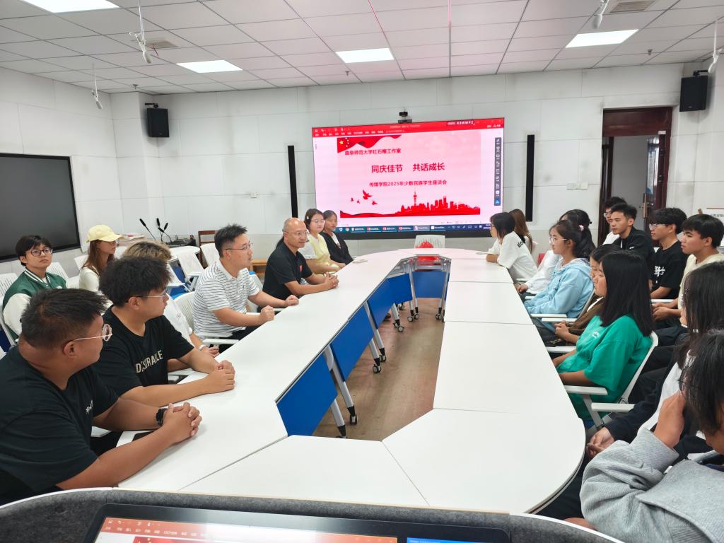 党委副书记田荣林、辅导员老师张洪孟以及少数民族学生代表参加座谈会。