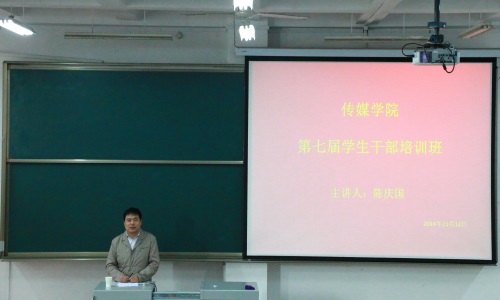 第七届学生干部培训班第七讲在JA102举行。本次培训由校团委副书记、学生工作办公室副主任陈庆国主讲,老王论坛