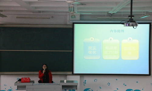 本次培训以“喜欢你—新闻采访与写作”为主题,从“新闻工作的现实和现状、新闻发现力、互动与交流”三方面展开讲解。首先,陈平平借用《等风来》中的经典桥段指出:“新闻传播专业是这个世界上最伟大的专业。”随后,结合自身经历说明,新闻工作者应该成为这个世界的“扫地工”,在实践中提升自身实力,为事实发声。接着,她提出:“发现,是采访的前提”,希望学子们掌握新闻发现力,及时识别新闻事实所具备的新闻价值。之后,陈平平围绕“新闻发现力”进一步阐释了“新闻发现力是新闻精品之母” 、“如何增强新闻发现力”、“发现、把握新闻精品,提升舆论影响力”等问题。其中,她重点强调了“寻找新闻兴奋点、用生动的语言写出新闻故事、将重要稿件写出思想、高度重视深度报道”是提升舆论影响力的重要手段。接着,她带领学生欣赏了优秀的新闻照片,向学生传授了角度的选择、构图方式等摄影技巧,并分析了照片所反映出的深远主题。最后,陈平平指出作为一个媒体人,应坚守原则和底线,以职业操守为先,实事求是。