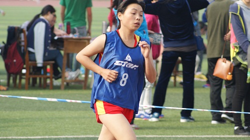 以优异的成绩荣获全校第三名,我们有幸采访到本次运动会女子1500米决赛冠军向尔银。