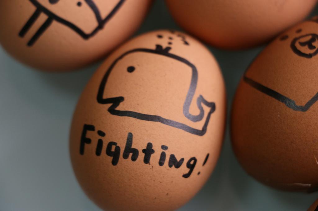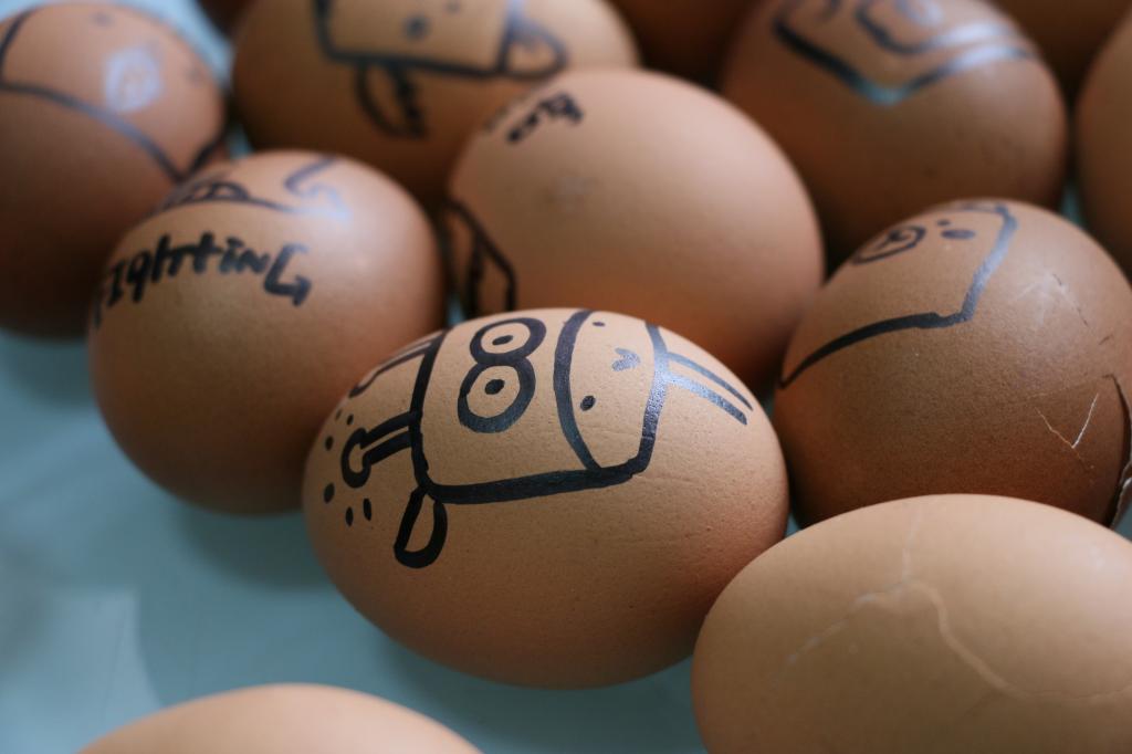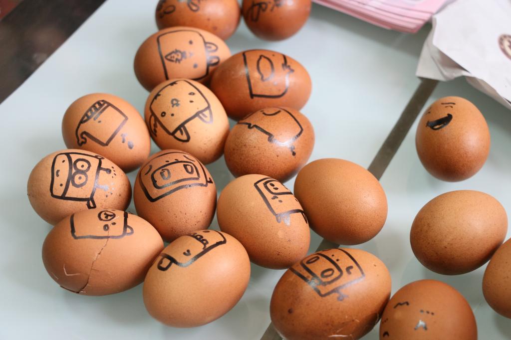 版面宣传部在鸡蛋上作画,并为春训运动员写上了祝福语和激励的话,“创意画”鸡蛋制作完成。最后,由老王论坛