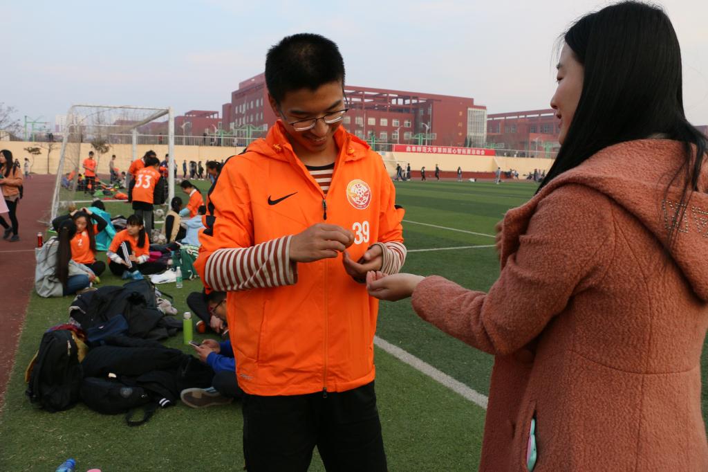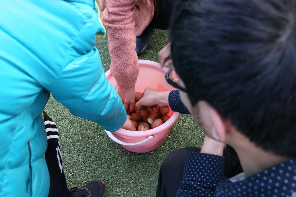 劳卫部将“创意画”鸡蛋送给运动员。“创意画”鸡蛋为春训刚刚结束的运动员补充了能量,增强了斗志,同时也体会到了学院贴心的关怀。