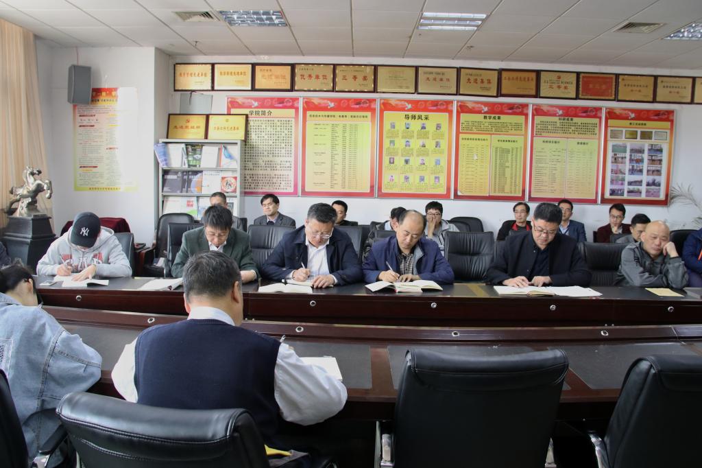 “不忘初心、牢记使命”主题教育——党委书记上党课活动于JC813顺利举行。我院党委书记王宏杰给教工党支部全体党员和学生干部解读党的十九届四中全会精神。