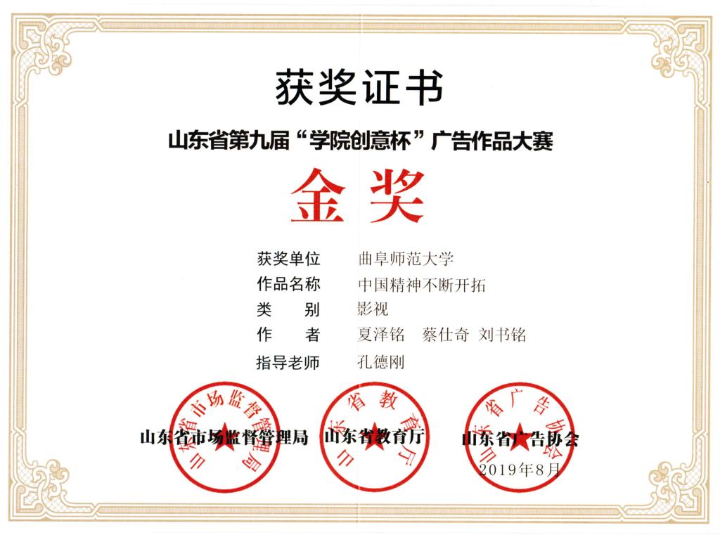 在本次比赛中获得最佳组织奖,孔德刚老师指导的影视广告作品在此次大赛中获金奖1项,银奖2项,铜奖1项。