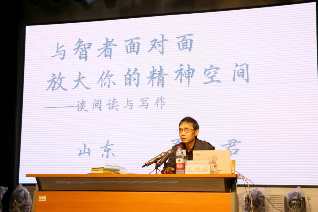 党委书记王宏杰为夏立君颁发兼职教授聘书。接下来,夏教授以“与智者面对面 放大你的精神空间—谈阅读与写作”为题做学术报告。在报告中,夏教授对深度阅读做了独到的剖析,提出写作的前提是阅读,有深度阅读,才有可能深度写作的观点,加深了传媒学子对如何正确阅读与写作的理解。而后,夏教授结合自身经历,提出人有两种阅历的观点,并结合其鲁迅文学奖获奖作品的创作经历着重讲述了人的两种阅历。夏教授通过对阅读,对写作,对生活的真切的体验所讲述的“写作是神圣的,但不是神秘的”“通过阅读可以修炼自我”等话语,引发了学生深刻地思考。在最后的问答环节中,夏教授就同学们与老师提出的问题,做出了详细的解答,提出了宝贵的建议。