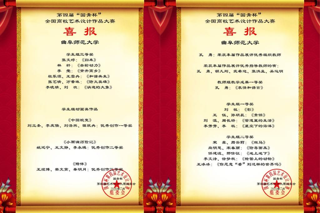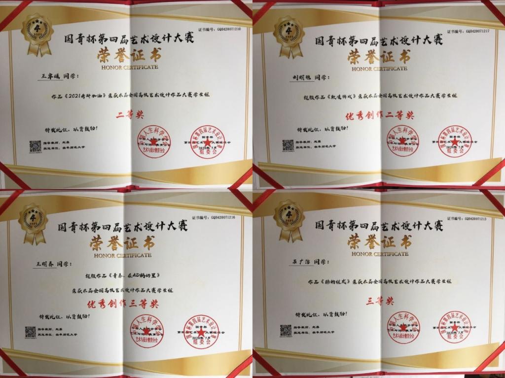 始终秉承着立德树人的教育理念,为深化高等教育改革,推动学生教育内涵式发展,积极鼓励学生参与此次“国青杯”艺术设计大赛。以比展技,以赛促学,传媒学子在参与比赛的过程中迸发出了创新思维、磨练了专业技能,真正做到了学思结合、知行合一。学生们在创作过程中将专业知识与家国情怀予以结合,用艺术设计传递对于当今时事的关切。