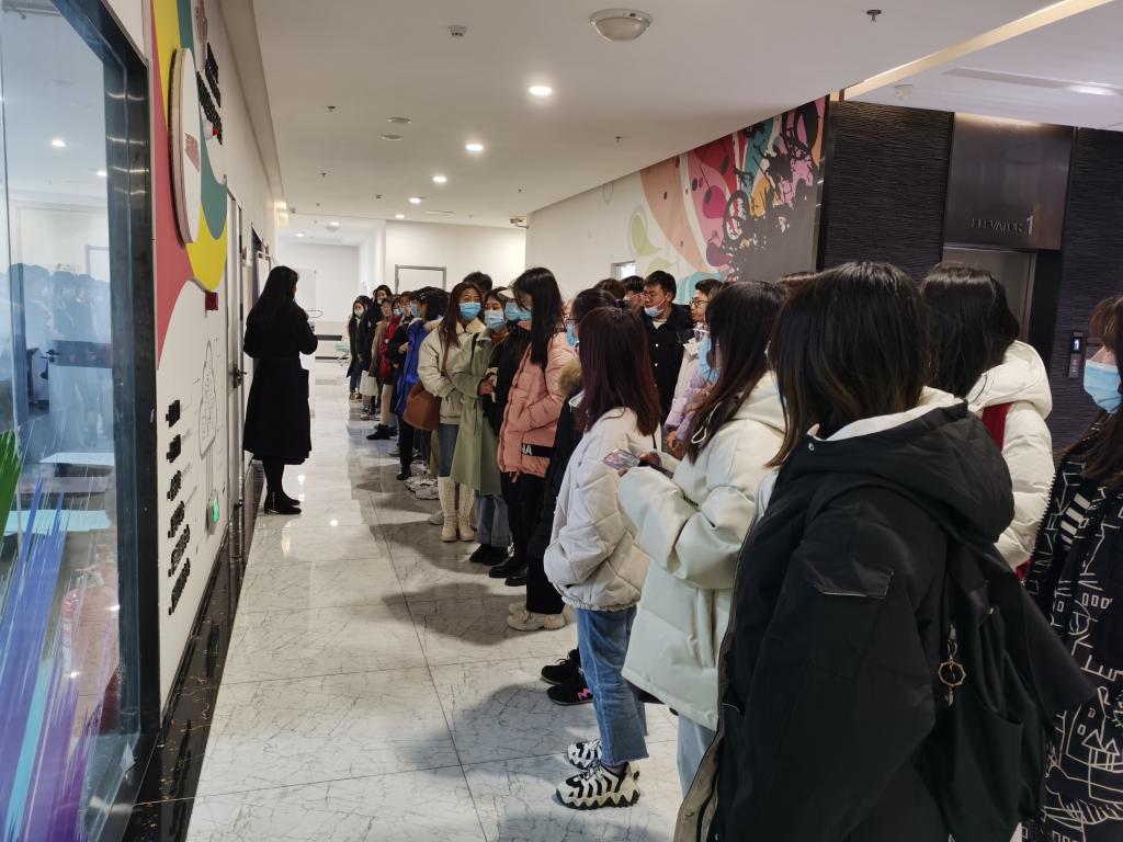 下午,学院师生来到烟台1861文化创意产业园B3号进行参观学习。在园区负责人的带领下,我院师生先后参观了打印室、摄影棚、录音棚、会议室等场所,见识到专业的摄影录音设备,体会到科技成果的运用,通过观看由园区负责人播放的特效剪辑对比视频,深深感受到剪辑技术在影视创作中的重要性。参观过程中,负责人根据具体场所详细介绍了时光坐标传媒有限公司的发展情况、合作院校、学员培训等方面,并结合具体的作品展示讲述了公司取得的项目成就,体现其强大优势。活动中,学生们认真听取讲解内容,积极探索,不断思考,体会到时光坐标传媒有限公司以“集团化影视全流程科技公司”为定位的深刻内涵,了解影视化创作发展趋势,意识到自身专业技能不足,有了更多思考。活动最后,全体师生合影留念。
