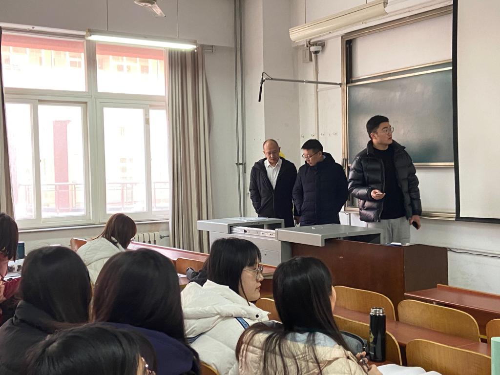院长王焕景、党委副书记田荣林、副院长赵可云、辅导员乔希、商秀英共同前往学生课堂了解情况。